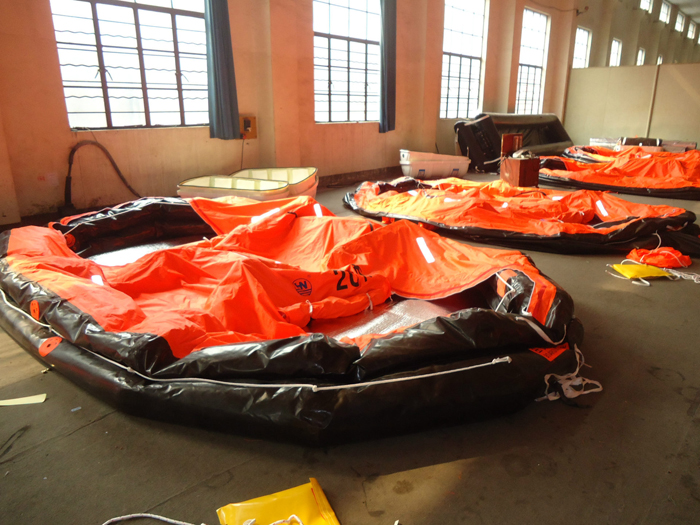 救生筏既可自動充脹成形,供遇險人員乘坐,如